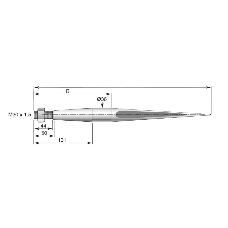 Sparex baggaspjót er sterkur teinn, lengd 1100 mm og skrúfufesting M20 × 1,50 (mm) – hannaður til notkunar þar sem öflug og áreiðanleg tenging við grindina skiptir máli.