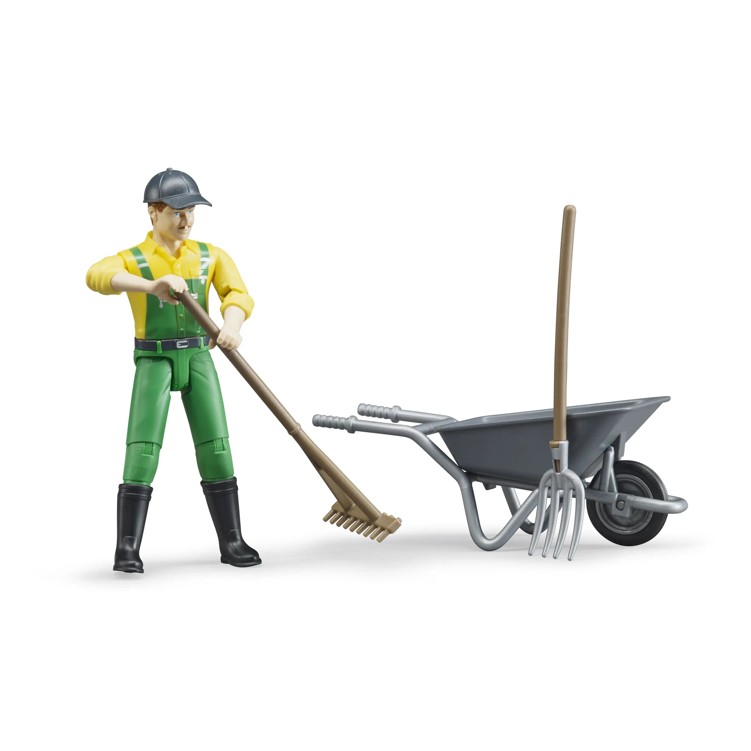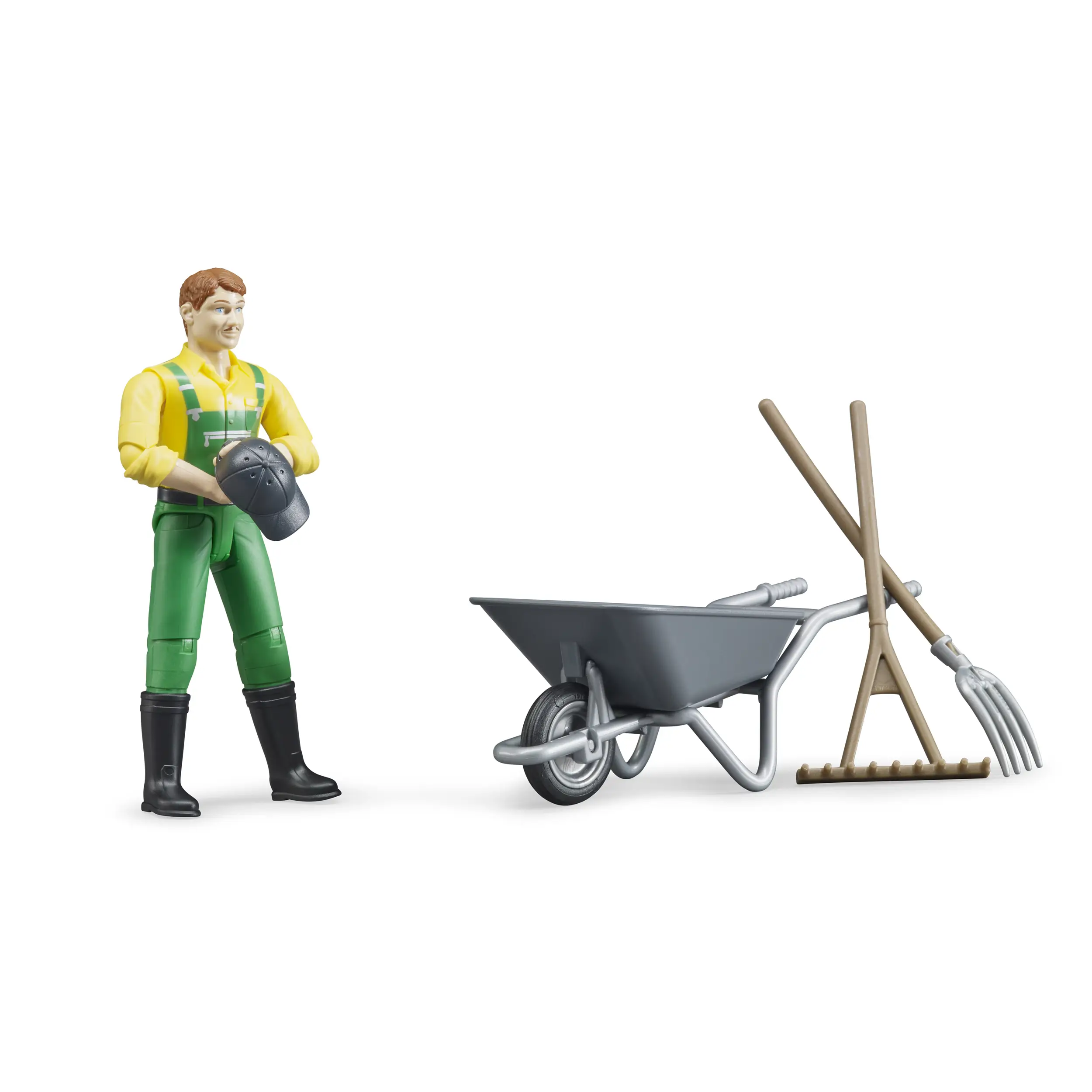 Leikfangasett úr Bworld þemanu sem inniheldur bónda með hreyfanlegum útlimum ásamt verkfærum og búnaði. Frábær viðbót við allar Bruder landbúnaðarvélar og fjósleiki.