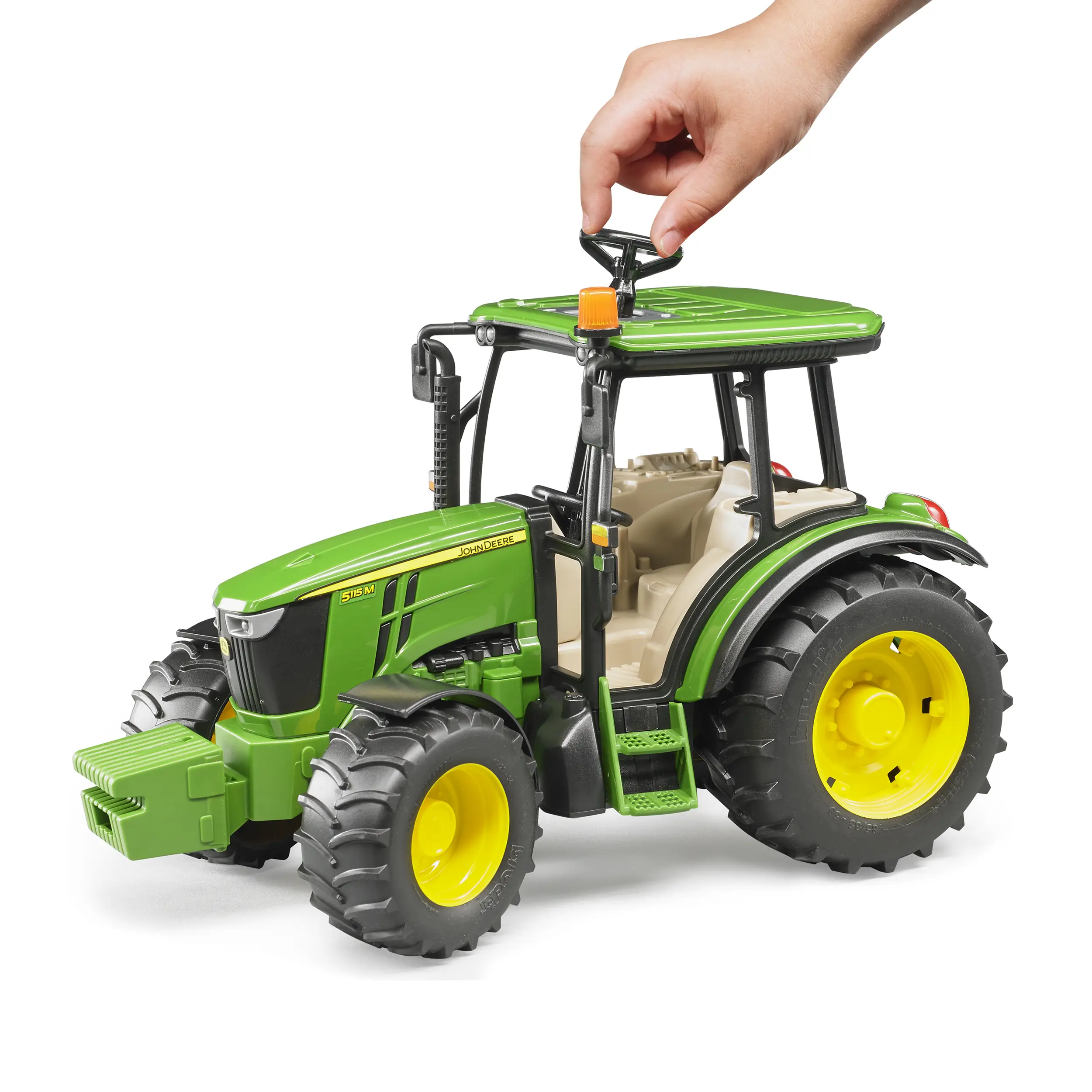 Bruder John Deere 5115M er lipur og fjölnota dráttarvél í 1:16 mælikvarða. Hún sameinar sterka smíði, raunveruleg smáatriði og leikvirkni sem hentar bæði í búleik og byggingarverkefni.