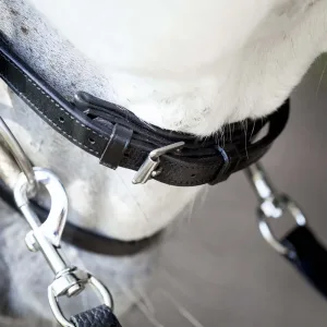 Á þessum Enska nasamúl er hægt að taka skáreimina auðveldlega af og setja hana aftur á, allt eftir þörfum. Fallegi og klassíski enski nasamúllinn er með einstaklega mjúkri bólstrun og sérstaklega þægilegur fyrir hestinn. Hann er gerður úr hágæða leðri með spennum úr ryðfríu stáli. Snúningsrúllur í smellunum gera stillingar auðveldar og fljótlegar. Aukalag af leðri undir spennunni kemur í veg fyrir klípur og festileður tryggir stöðugleika og snyrtilegt útlit.