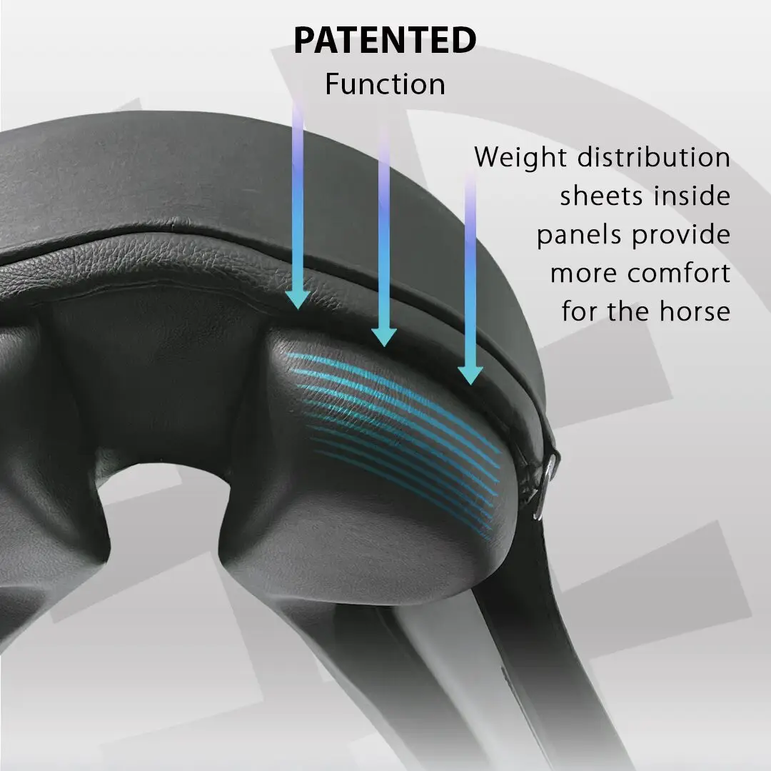 Hrímnir Hybrid Riding Pad er hnakkur án hnakkvirkis sem sameinar þægindi og næmt samband milli knapa og hests. Léttur, mjúkur og sveigjanlegur púði sem styður rétta líkamsstöðu og tryggir jafnvægi í reiðinni – fullkominn fyrir daglega reið og þjálfun.