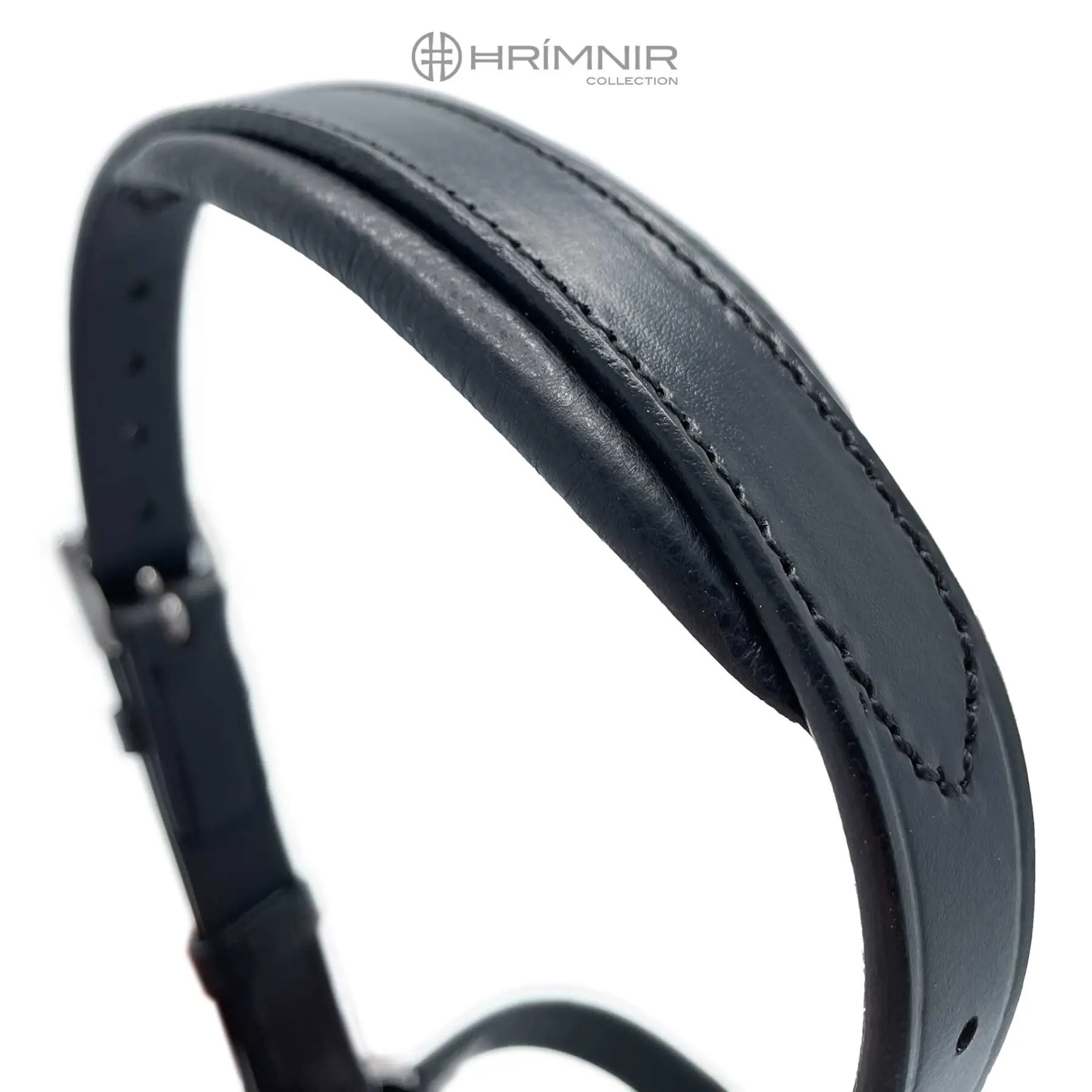 Nefbandið inniheldur málmstykki sem gerir þjálfaranum kleift að hafa nákvæm áhrif á hestinn. Málmstykkið er mjúklega bólstrað til að vernda nefbein hestsins og tryggja jafna dreifingu þrýstings. Það má móta það að lögun höfuðs hestsins með því að beygja það varlega, sem tryggir að múllinn passi fjölbreyttum höfuðmótum og stærðum. Bæði höfuðleður og undirhökuól eru mjúklega bólstruð til að veita betri þrýstingsdreifingu og aukin þægindi fyrir hestinn.