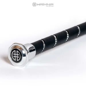 Mjög léttur pískur með fínum demantsmynstruðu skrauti á handfanginu og Hrímnir-merkinu efst. Pískurinn hefur frábært jafnvægi í hendi og er nægilega stífur til að trufla ekki hestinn við reið.