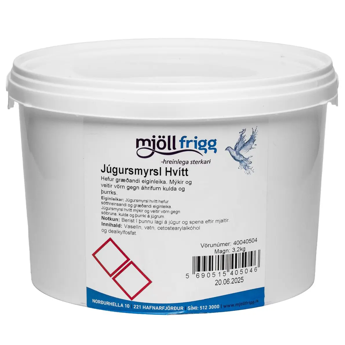 Júgursmyrsl hvítt mýkir og veitir vörn gegn sólbruna, kulda og þurrki á júgrum.