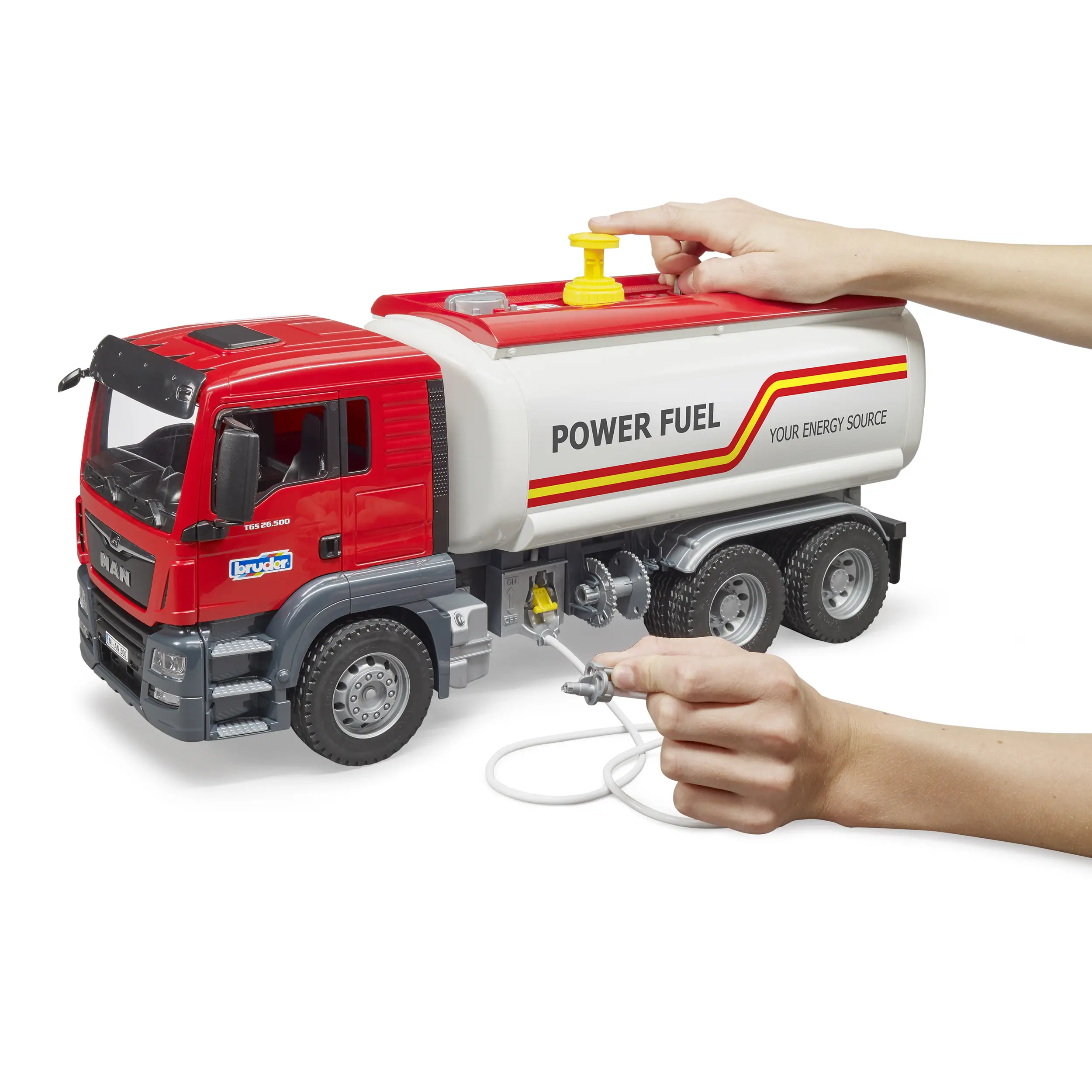 MAN TGS tankbíllinn frá Bruder er smíðaður eftir einni vinsælustu vörubíllínu Evrópu og er frábær viðbót fyrir hvers kyns leikbyggingarsvæði eða flutningsverkefni. Bíllinn er úr sterku ABS plasti og er búinn nákvæmum smáatriðum eins og opnanlegum hurðum, skýrum ljósum og vel útfærðu stýrishúsi.