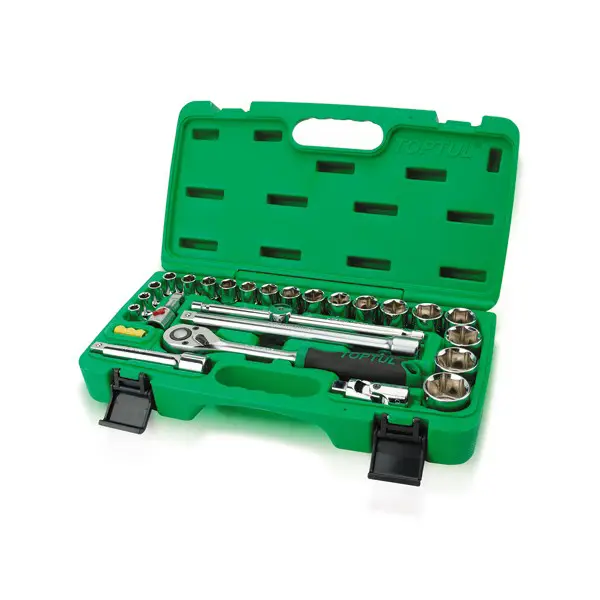 Þetta 28 hluta topplyklasett er hannað fyrir þau verkefni þar sem meiri kraftur og ending skiptir máli. Með 1/2” drifi og vönduðum toppum í helstu stærðum er þetta frábært sett fyrir bíla-, vél- og viðhaldsverk, þar sem áreiðanleg og sterk verkfæri eru lykilatriði. Settið kemur í endingargóðu geymsluhylki sem heldur öllu skipulögðu og tilbúnu til notkunar.