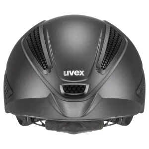 Vöruþróunaraðilar og hönnuðir uvex hafa lagt alla sína þekkingu í að þróa þennan reiðhjálm: ein af nýjungum sem varða öryggi er ytra byrðið, sem hefur verið framlengt niður að aftanverðu höfði. Að framlengja byrðið yfir hálsinn veitir hámarksöryggi – einnig fyrir aftanverðu höfði knapans. Útskurður fyrir tagl gerir hjálminn þægilegan.
